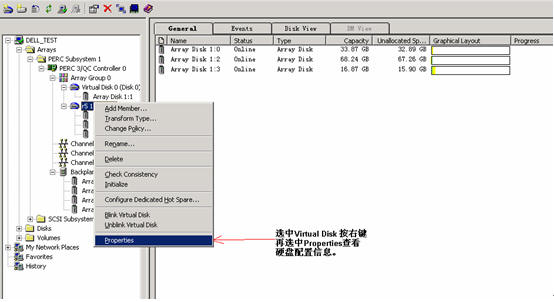 进入管理界面后,选中相应的磁盘可以查看阵列的配置信息。